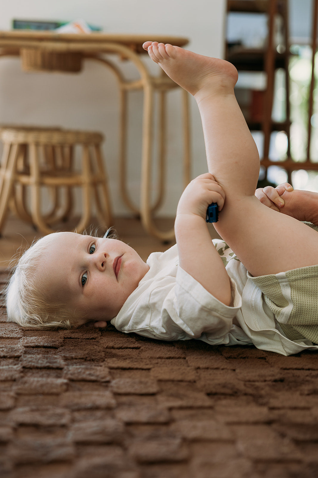 I wasn’t sure how the raised check would feel, but it’s lovely underfoot and great for crawling and rolling around