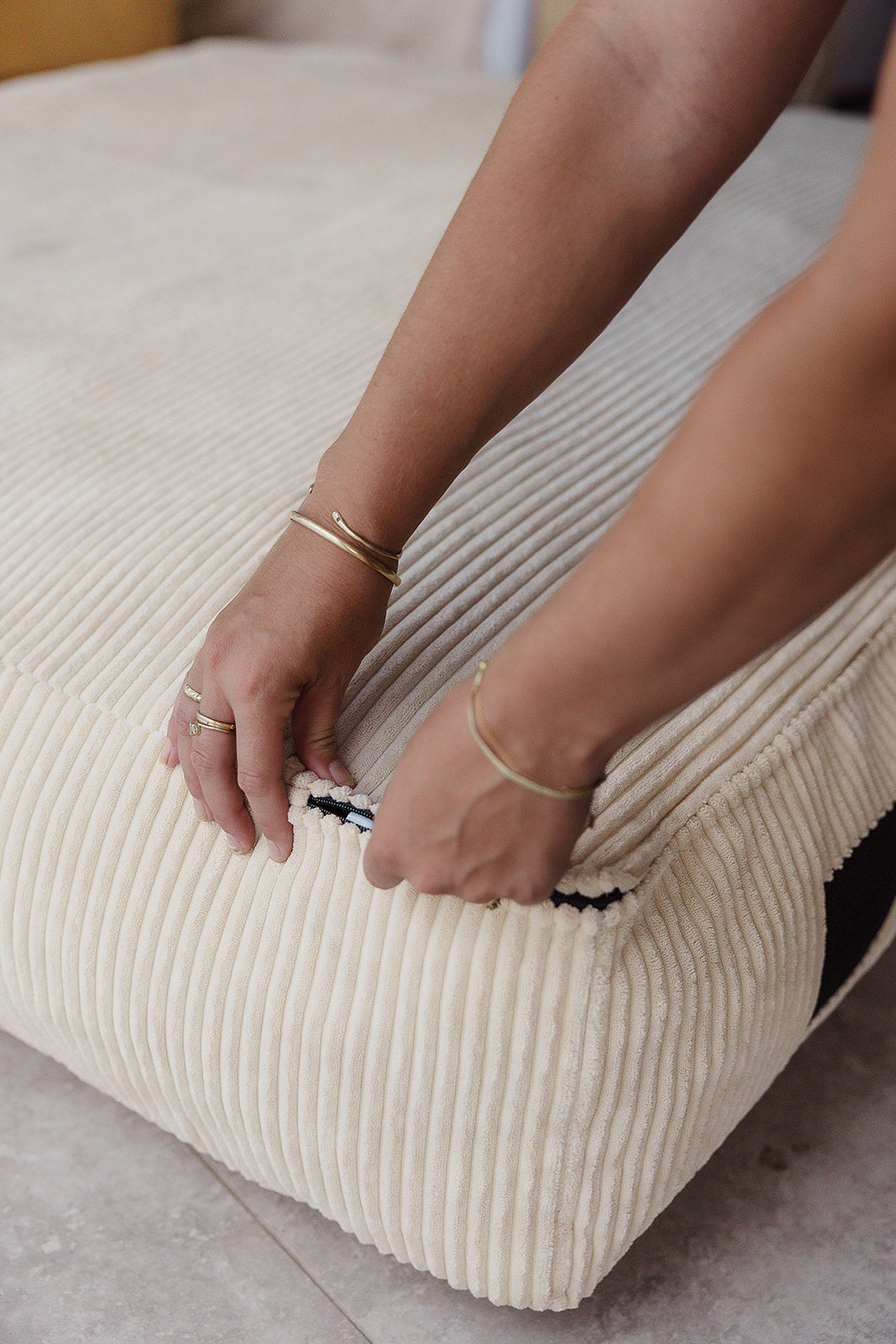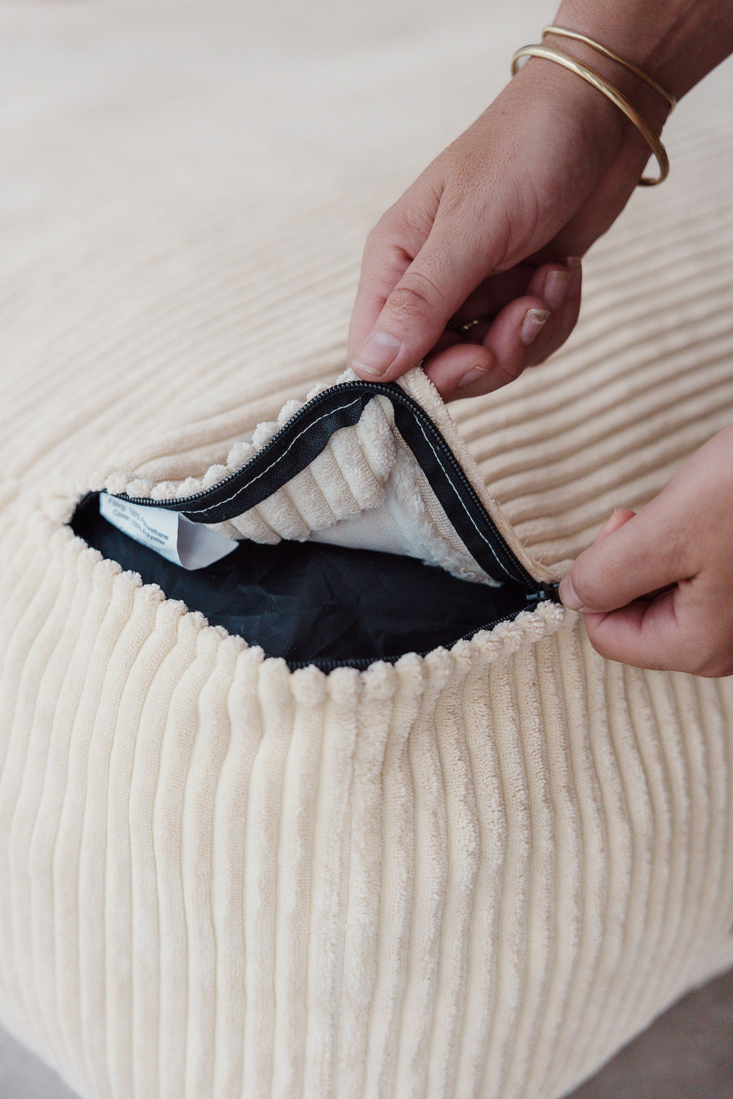 Finished with our signature soft corduroy cover — Cloud Puff (XL) or Bear Hug Brown (L)