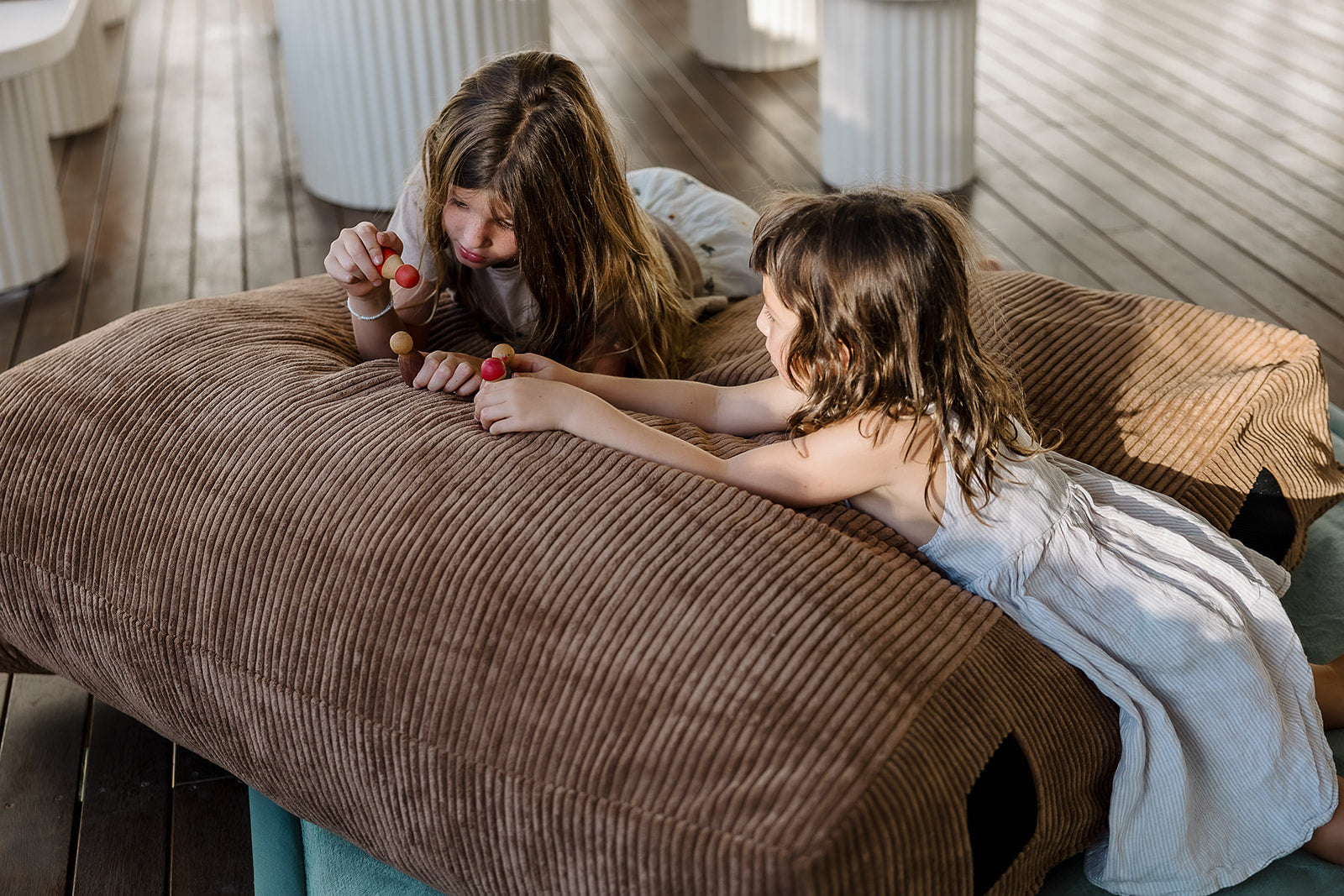 A comfy, oversized staple for bedrooms, playrooms and family spaces. Thoughtfully designed for both play and rest.